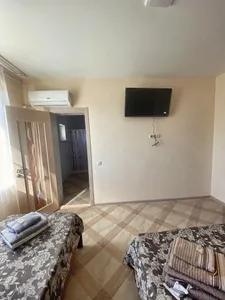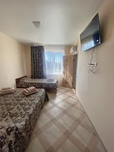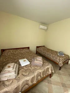 Впечатления от номера самые положительные. Дом недавно построенный, свежий ремонт.В номере все необходимое есть: кондиционер, телевизор, холодильник, фен,белоснежное постельное белье, мягкие огромные полотенца.На улице беседка на несколько столов.Хозяева очень гостеприимные и радушные.Чувствуется, что