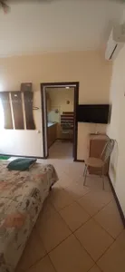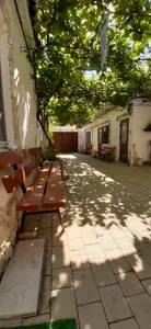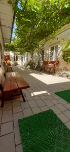 Тихий, затемненный дворик, где можно спрятаться от палящего солнца. В комнате было все необходимое. Холодильник, кондиционер, телевизор. горячая вода есть всегда
