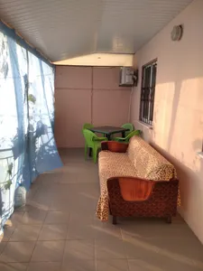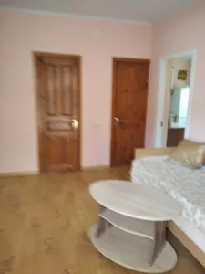 Изначально собирались поселиться в Мирном. СНТ попало в зону внимания случайно. Искали минимум двухкомнатное помещение с отдельной кухней с возможностью проживания с собакой. В данном гостевом доме их два. Хозяйка показала оба. Остановили выбор на втором этаже. Отдыхом остались очень довольны. Метров 100 до оборудованного пляжа СНТ на озере Донузлав. Рядом поле и дикий пляж, где можно погулять с питомцем. И нет злобных бродячих собак, с которыми столкнулись в Штормовом годом ранее.