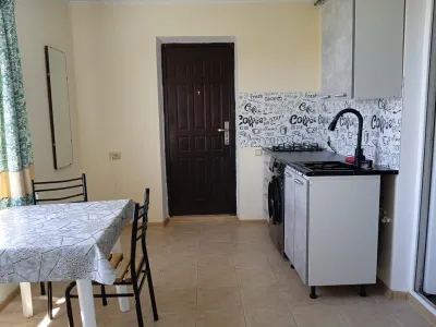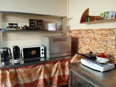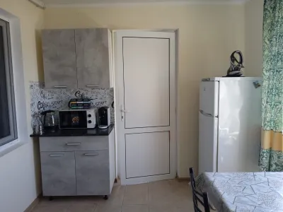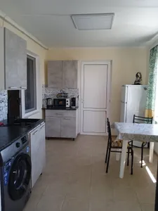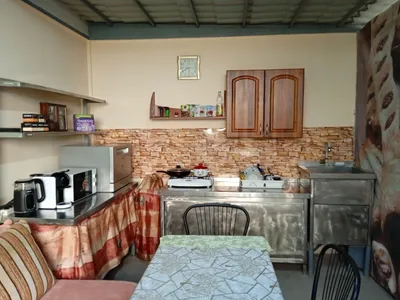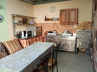 Всего на территории 5 номеров, 4 однокомнатных, один двухкомнатный. В каждом номере душ, туалет, тв. Одно и двухкомнатный номер трансформируются в трёхкомнатный с двумя санузлами, и можно разместить 6 -7 гостей. Один номер 25 кв. М имеет отдельную кухню и террасу. Для других номеров отдельная кухня и столовая. Гостевой дом расположен в тихом, спокойном месте, на третьей линии. До моря 800 метров. В кухонных зонах имеются газовые плиты, микроволновки, холодильники, вся возможная посуда, электрочайники. В каждом номере wi -fi, имеютс сплит системы, стиральные машины, утюги и прочее. …