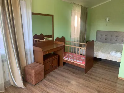 В номере чисто, работает кондиционер. Отличные хозяева, потребовался дополнительный холодильник, сразу предоставили. Разрешили хранить пять велосипедов во дворе. Есть теннисный стол, мангал. Прекрасное, тихое место для семейного отдыха!