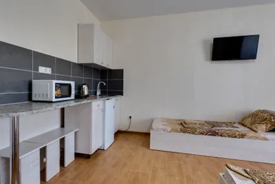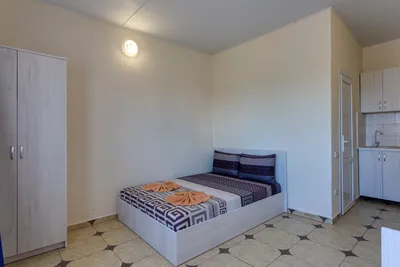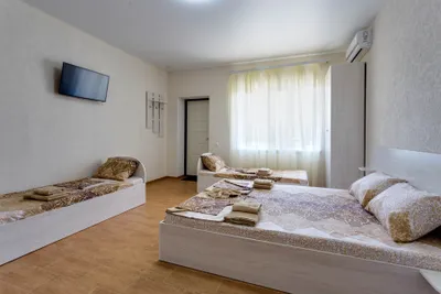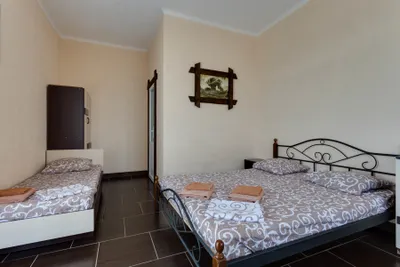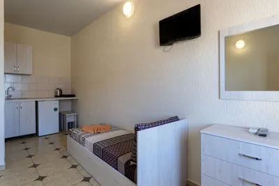 Гостевой дом с номерами, рядом пляжи закрыты и охраняются в связи с обстановкой. Из-за этого унылый вид вокруг, решили не останавливаться здесь, нашли другое жилье. Возможно ранее здесь было кайфово, (вид из номеров на море, бронировали из за этого) но сейчас все выглядит как то грустно. Во дворе есть небольшая детская зона, выглядела не убрано.